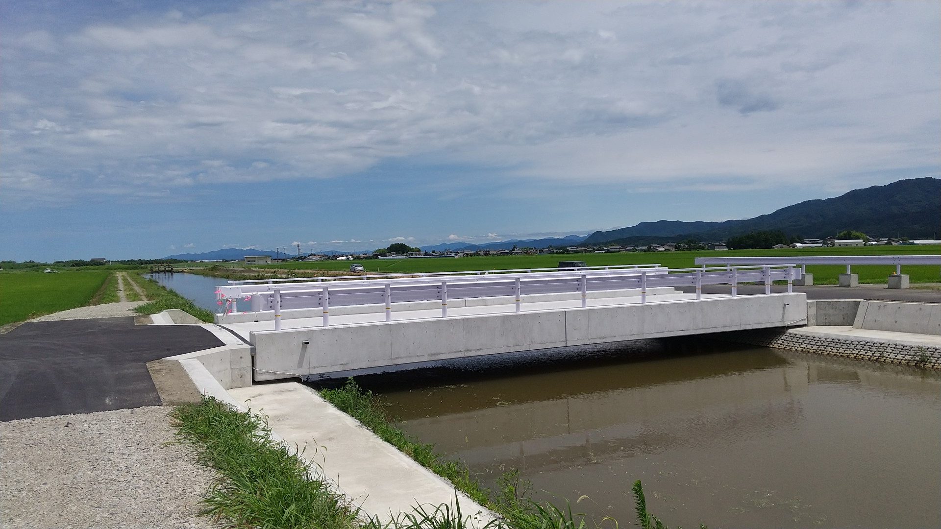 ■橋長:L=16.6m、幅員W=6.2m、H0.6m、N=8(附帯工:取付道路工、市道取付道路工) ■架設工法:クレーン架設 |
